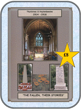 The above two books were researched, written and produced by a local Penistone couple to commemorate all the men from Penistone, Thurlstone and the surrounding areas who lost their lives in “The Great War”. “The Stories Behind the Names” gives details of the family, personal and military history of each of the 58 names on Penistone memorial and seven other men not on the memorial, but from the local area. In the book “The Fallen, Their Stories” they researched the stories of 19 men from the Thurlstone area and 4 from Hoylandswaine. Both books include letters from overseas, awards, photos and other interesting facts. The books are available for sale in Penistone Library and other outlets in Penistone. The profits from the Penistone book are going to SSAFA and BLESMA (2 forces charities), with some also going to Penistone History Archive. Profits from the Thurlstone book will be given to St Saviours Church in Thurlstone. During the research they discovered a memorial table in Thurlstone Church dedicated to Major Richard Day, MC & Bar. Richard was not from Thurlstone but had family in the town. They have produced a small booklet about this man as well, which has been given to Thurlstone Church. If anyone would be interested in a copy, or for further information regarding either of the above books, please contact R & J Dyson |