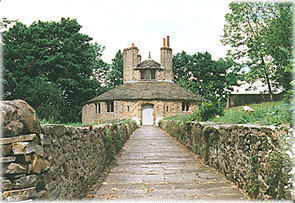 Just down the road from Beamsley Hospital is one of Yorkshire's most visited areas - Bolton Abbey. A famous landmark is this outstanding triple archway, it is cursed by some because of the traffic jams it causes. It can also be a tricky manoeuvre for coaches and the like. What many don't know is that this mediaeval structure is in fact an aqueduct that used to supply power for a corn mill at the abbey. Nearby you can see the dams that supplied the water. Click here for a close-up of the archway. King George V often stayed at a shooting lodge here. |